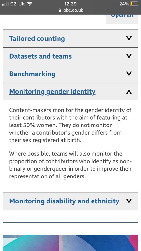 Yet the 2021 version of 50:50 now monitors ‘gender identity’ in data gathering. This is not what 50:50 was named for or designed to do. In doing this it’s simultaneously redefined the meaning of the word ‘woman’.