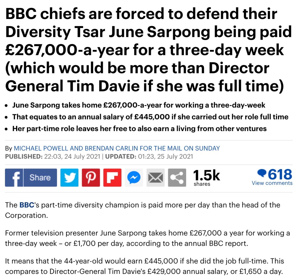 “The BBC’s 50:50 project was originally set up to ensure that 50% of the population (ie women) had their voices and perspectives heard. It was an impressive and successful corrective to the routine visibility of men booked as interviewees and experts on news and other programmes. It’s run for several years and has made a real difference.