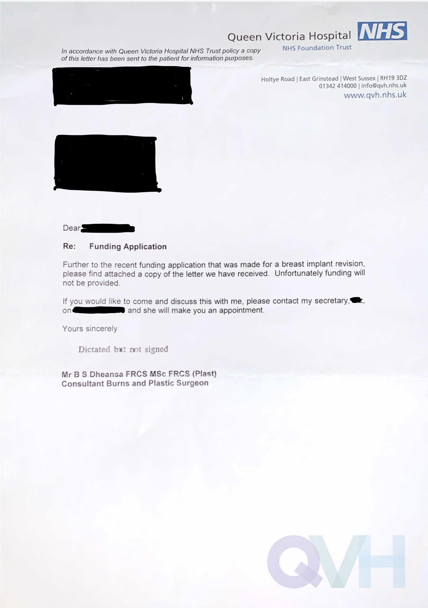 A few months later, I received a letter from South East CSU and was informed in bold capital letters: FUNDING DENIED. As you can imagine, both my surgeon and I were aghast.