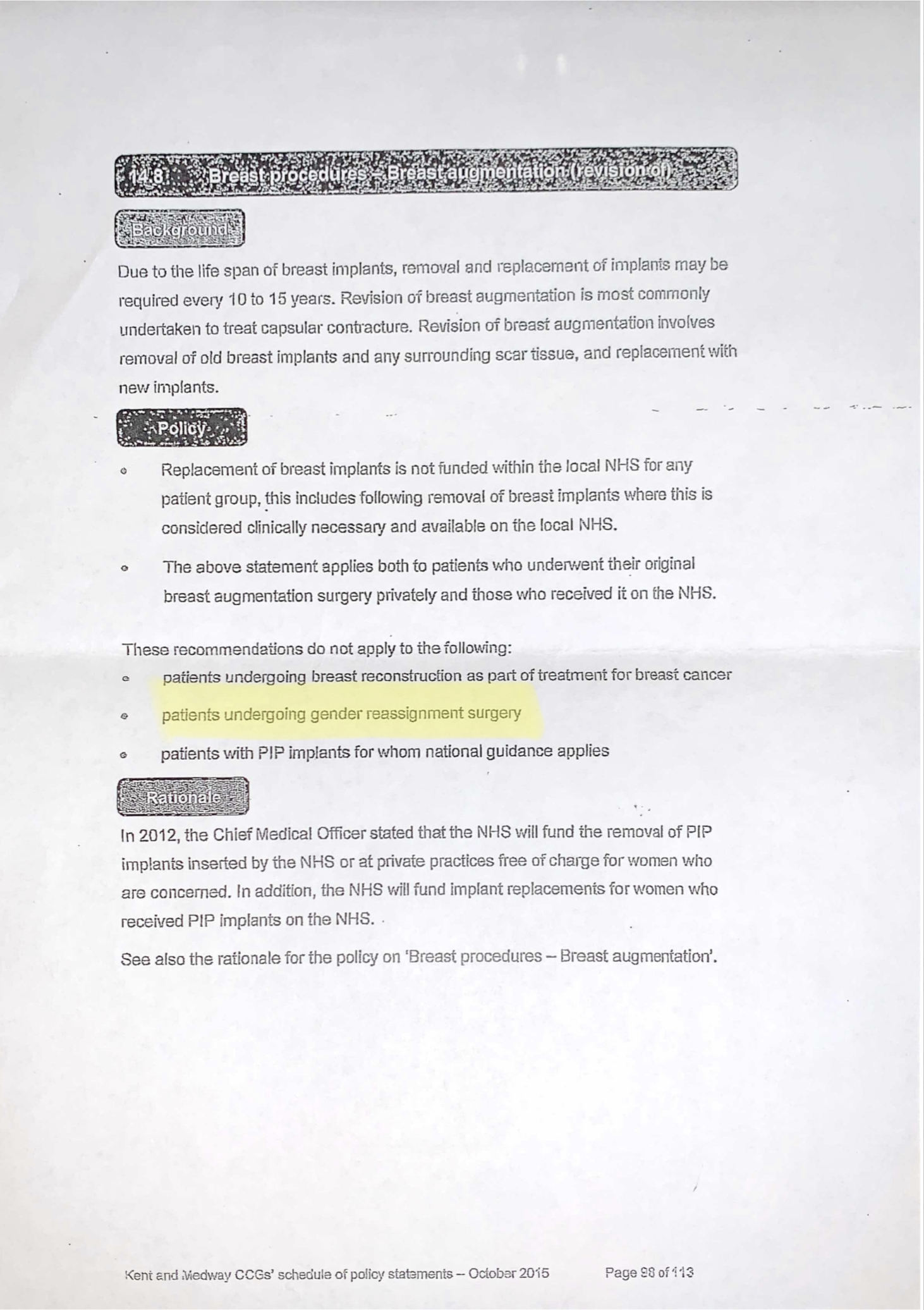 The letter went onto explain that unless the patient suffers from a rare or exceptional condition, no surgery could be undertaken regardless of any discomfort and/or if the implants were once clinically necessary. According to the NHS my breasts are now a cosmetic luxury, despite them causing me a great deal of pain. At the time of the initial denial, I was at the Baker Scale grade of 3.