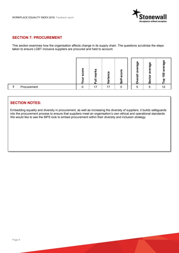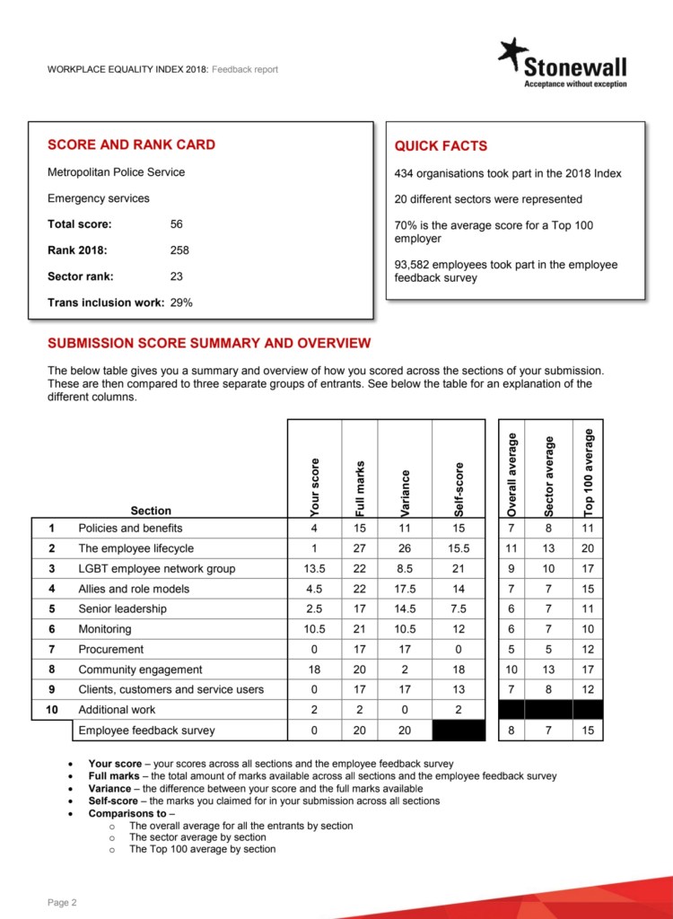 “This is the feedback report from the Met’s submission to the Stonewall Champions Index in 2018. It focusses obsessively on identity. It annoys me that police officers are scrambling around wasting hours on this to gain a few points on a ridiculous index. You will see at one point Stonewall encourages links to Mermaids.”