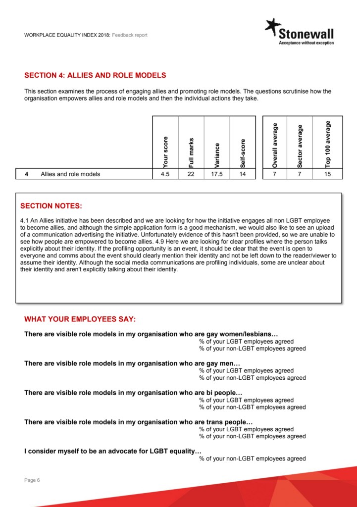 Section 4 asks to see Allies Initiatives advertised, people talking about their identities and people’s identities announced in advance;